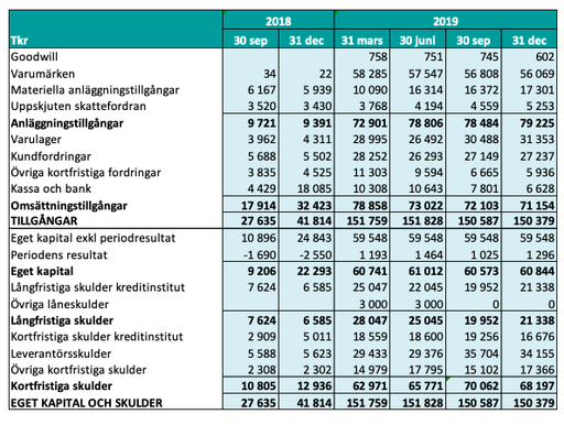 - Rörelseresultatet före avskrivningar (EBITDA) uppgick till 3,0 MSEK. Proforma sista kvartalet 2018 var EBITDA 4,7 MSEK.