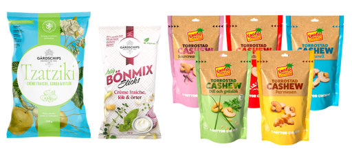 Det är kombinationen av Exotic Snacks nya cashew serie som förväntas lyfta försäljningen utav påsförpackade nötter framöver. Mixa ärtor och bönor, smaksätt med crème fraiche, lök och örter. Där har ni Gårdschips senaste nyhet i Smartsnacksserien. Ett snacks fullt av smak och fiber samt i ny uppfräschad förpackningsdesign.