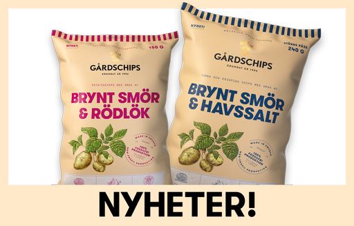 Året inleds med två nya chipssmaker från varumärket Gårdschips som fortsätter fokusera på svenska smaker. De två nya smakerna Brynt smör & Röd lök samt Brynt smör & Havssalt kommer att finnas i butikshyllorna under vecka 3/2022