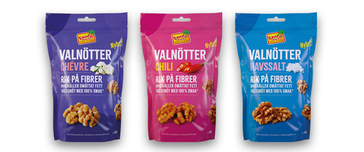 – Vi gjorde en konsumentundersökning och det visar sig att det är många som konsumerar valnötter som snacks och det var kanske lite oväntat. Vi ser även att det är en mångsidig nöt med olika användningsområden. Valnöten är en hälsosam stenfrukt som till och med har ett godkänt hälsopåstående enligt EFSA vilket gör det extra kul att vara först med att lansera den som snacks, säger Marie Eklund, Marknadschef Premium Snacks Nordic AB.