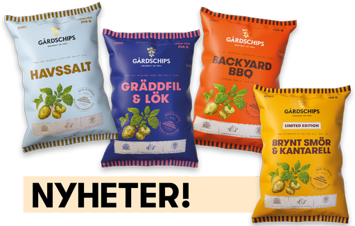 Sensommaren inleds med flertalet nya premiumchips från varumärket Gårdschips, nyheter som kommer att finnas i butikshyllorna fr.o.m. vecka 33. Hösten inleds med Backyard BBQ som är en mustig och spännande rökig smak.